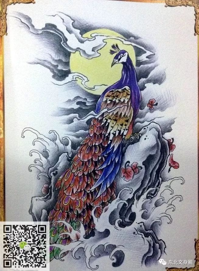 传统孔雀凤凰不死鸟彩色唐门原创纹身手稿是兰州市土豪